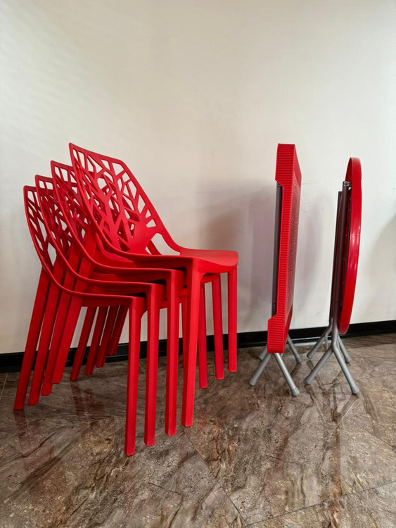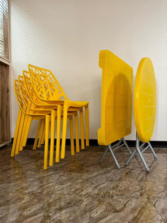 میز و صندلی چهارنفره شاخ و برگی تمام پلیمری شاخ و برگی رستوران فست فود