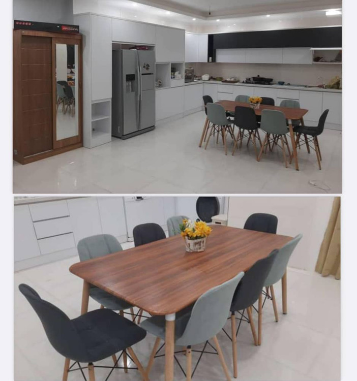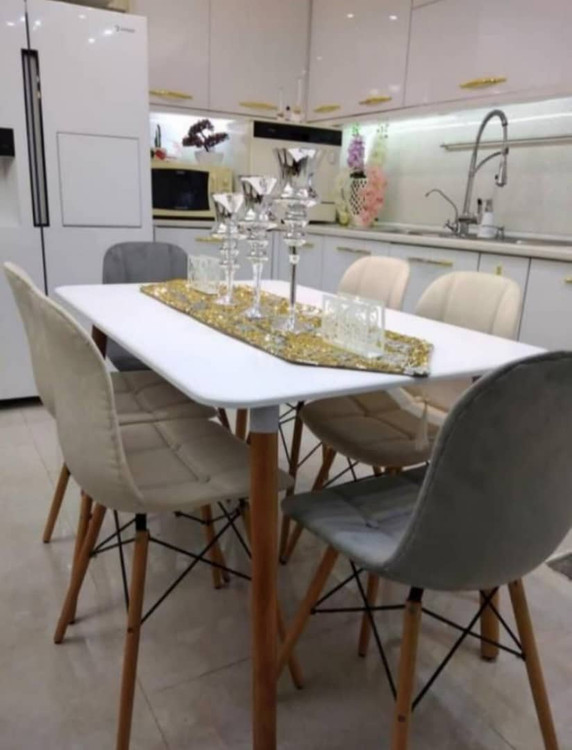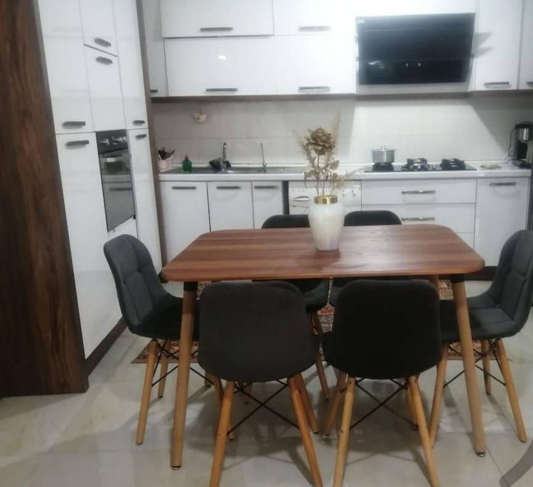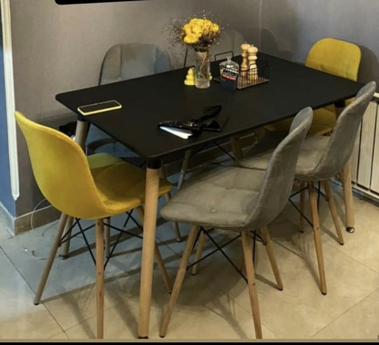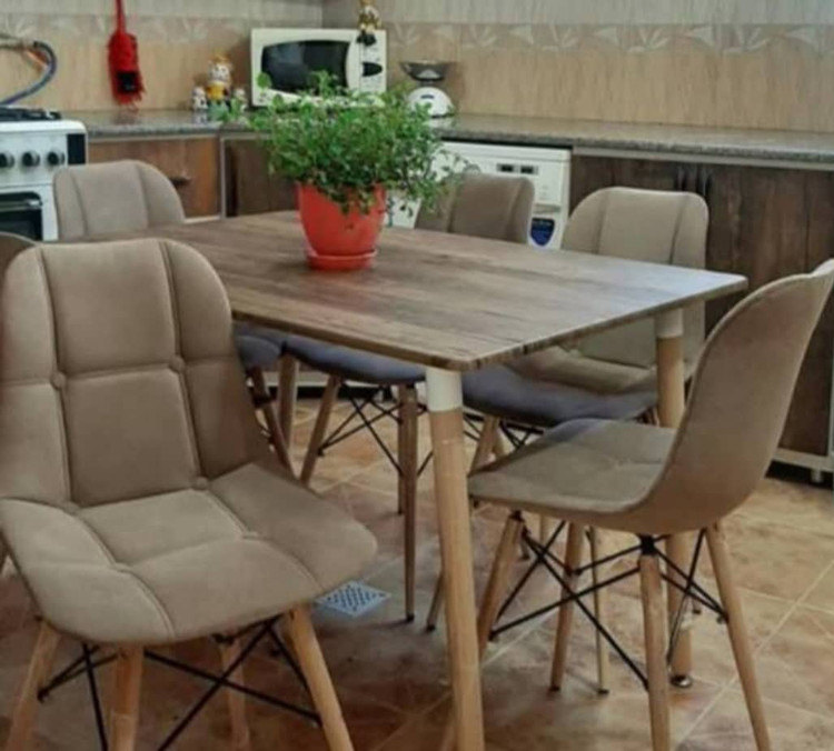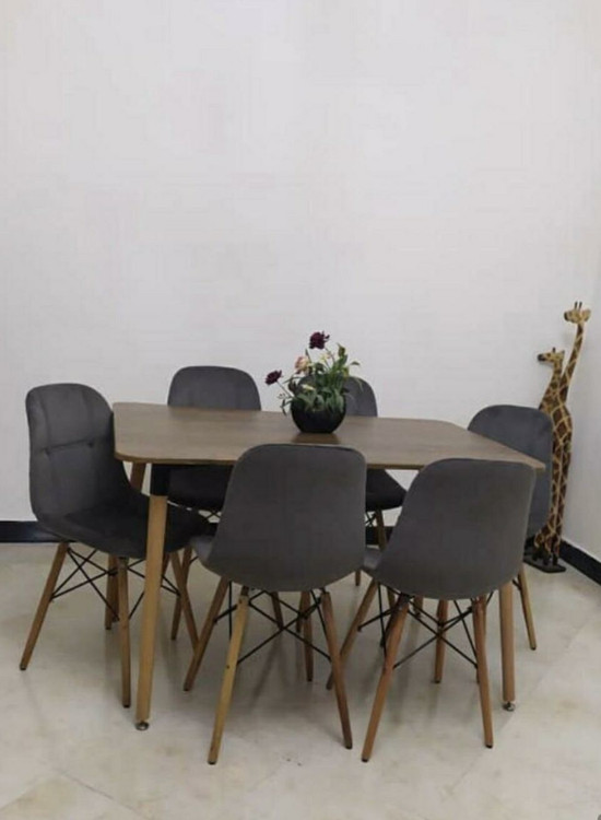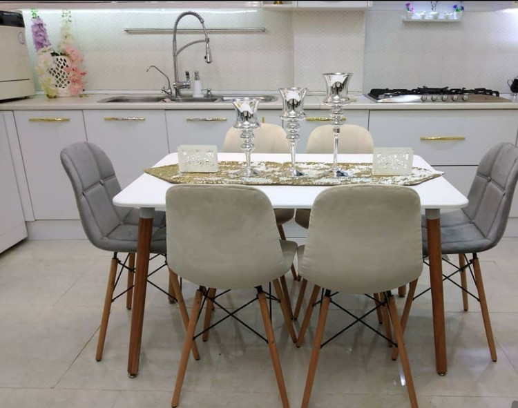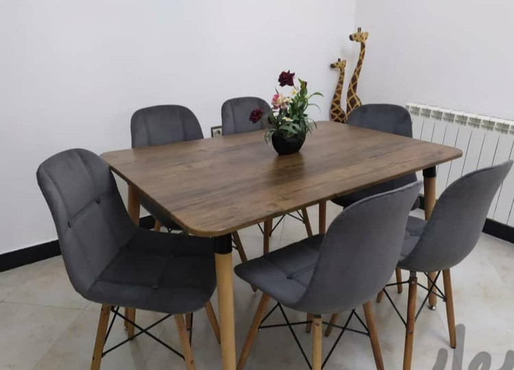 میز و صندلی شش نفره پارچه ای چوبی آریا لمسه